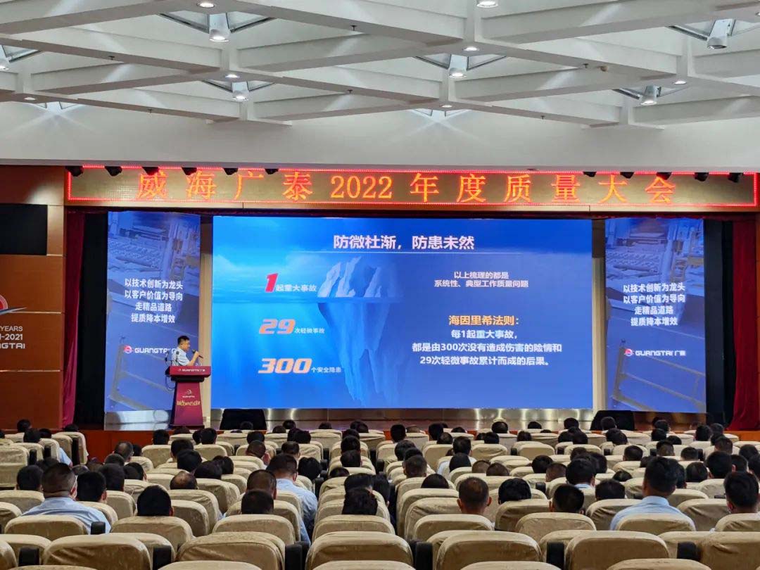 下午13:30,在廣泰研發(fā)大樓禮堂,威海廣泰召開以“數(shù)據(jù)推動質(zhì)量創(chuàng)新 全面參與持續(xù)創(chuàng)新”為主題的2022年度質(zhì)量大會,李文軒董事長出席會議,公司副總經(jīng)理尚羽主持會議,各分子公司同步線上參會。