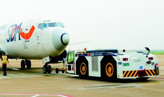 該類設(shè)備是牽引和頂推飛機(jī)離開機(jī)場(chǎng)停機(jī)廊橋的地面保障設(shè)備,同時(shí)還可因飛機(jī)故障及維護(hù)需要,用于救援、牽引和移動(dòng)飛機(jī)至維修機(jī)庫(kù)。該設(shè)備主要由駕駛室、車架總成、動(dòng)力傳動(dòng)系統(tǒng)、蓋板總成、液壓系統(tǒng)和電氣系統(tǒng)組成。