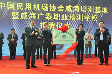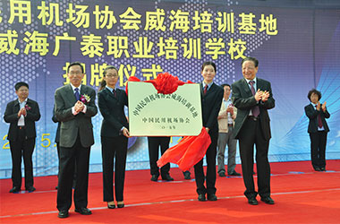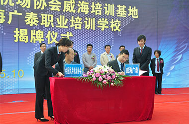 2015年10月,威海廣泰與中國民用機場協(xié)會聯(lián)合在威海廣泰職業(yè)培訓學校成立“中國民用機場協(xié)會威海培訓基地”,整合優(yōu)勢資源,互利共贏,共同打造空港地面設備從業(yè)人員職業(yè)化培訓平臺,進一步拓寬了師資渠道和培訓力量,提高培訓質量和實效性,對推進我國機場從業(yè)人員資質能力培訓的系統(tǒng)化、標準化,具有重要意義。