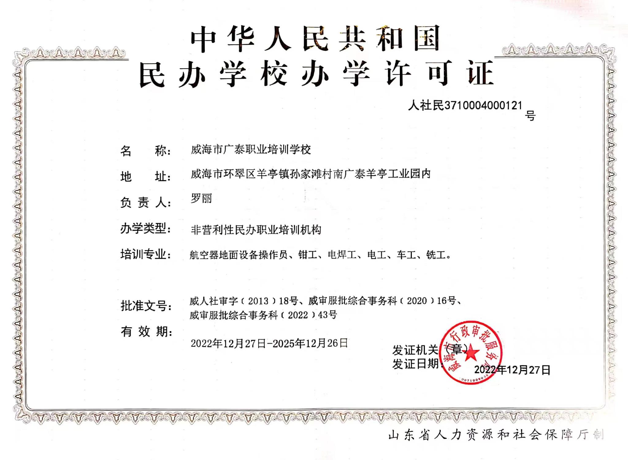 威海廣泰職業(yè)培訓學校成立于2013年,由威海廣泰空港設備股份有限公司全資設立。 學校位于威海市環(huán)翠區(qū)羊亭鎮(zhèn)惠河路93號,是經(jīng)威海市人力資源和社會保障局批準成立的職業(yè)培訓機構,具有民航特種車輛操作工、民航特種車輛機械維修工、民航特種車輛電氣維修工、鉗工、電工、焊工、車工、銑工、涂裝工、計算機操作員等工種的初、中、高級職業(yè)技能培訓資質。學校致力于成為民航業(yè)內專業(yè)的技能提升培訓服務機構,堅持“教練結合、寓教于練”的培訓理念,為學員提供優(yōu)質的培訓服務。